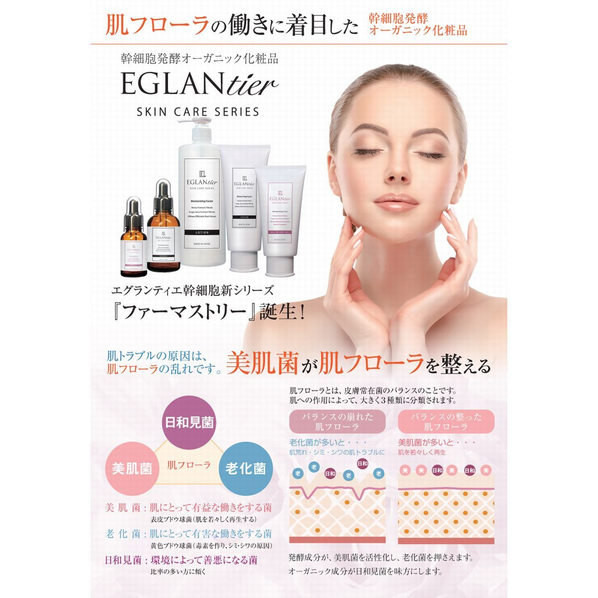 塗布後は、肌フローラが急激に改善されるので、艶、ハリを体感できます。