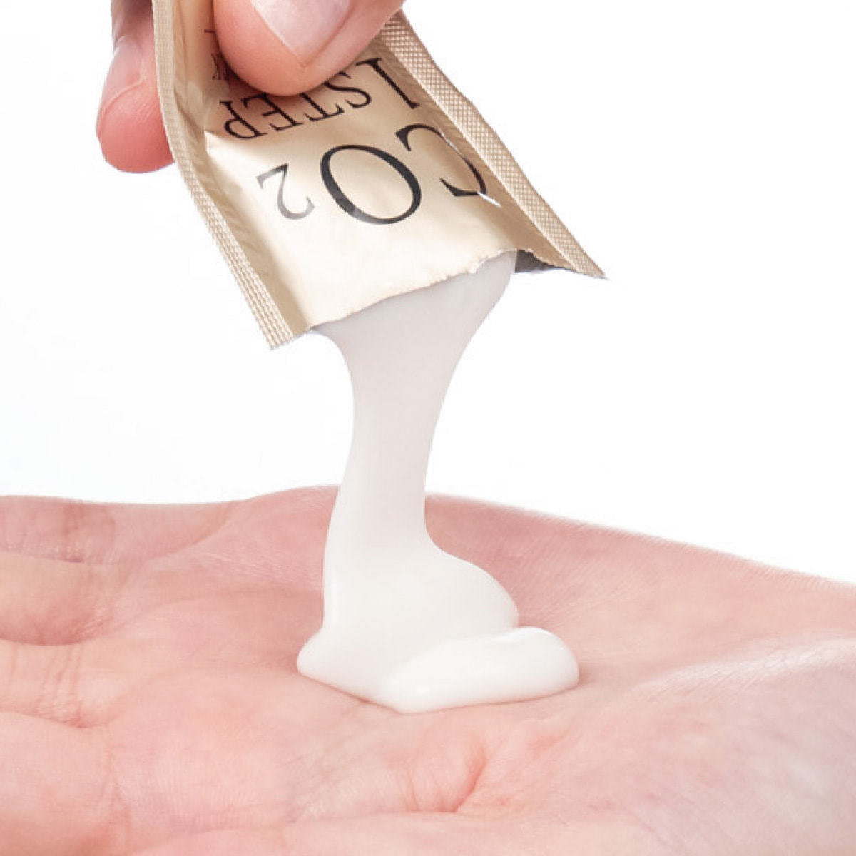 洗顔後、手やお顔が乾いた状態で手にとり、ワンステップバブルパックを塗布します。