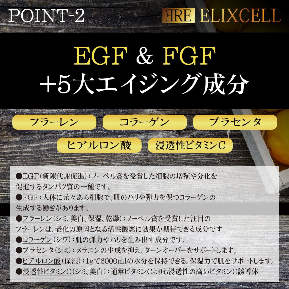 水、BG、イソペンチルジオール、グリセリン、ヒト幹細胞順化培養液、ヒト脂肪由来間葉系細胞エクソソーム、フラーレン、プラセンタエキス、ヒアルロン酸Na、加水分解コラーゲン、アスコルビルメチルカルボニルペンタペプチドー72ートリーtーブチルトリプトファナミド、酢酸トコフェロール、ナハカノコソウ根エキス、セイヨウキズタ葉/茎エキス、アルニカ花エキス、イチョウ葉エキス、セイヨウトチノキ種子エキス、セイヨウオトギリソウ花/葉/茎エキス、ハマメリス葉エキス、ブドウ葉エキス、ローズマリー葉エキス、セージ葉エキス、ワレモコウエキス、ワイルドタイムエキス、キハダ樹皮エキス、加水分解エラスチン、グリチルリチン酸2K、ジ酢酸ジペプチドジアミノブチロイルベンジルアミド、アラントイン、エチルヘキシルグリセリン、PEG-60水添ヒマシ油、水添レシチン、ポリソルベート80、キサンタンガム、PVP、プロパンジオール、トリ(カプリル酸/カプリン酸)グリセリル、1,2-ヘキサンジオール、ペンチレングリコール、カプリリルグリコール、フェノキシエタノール
