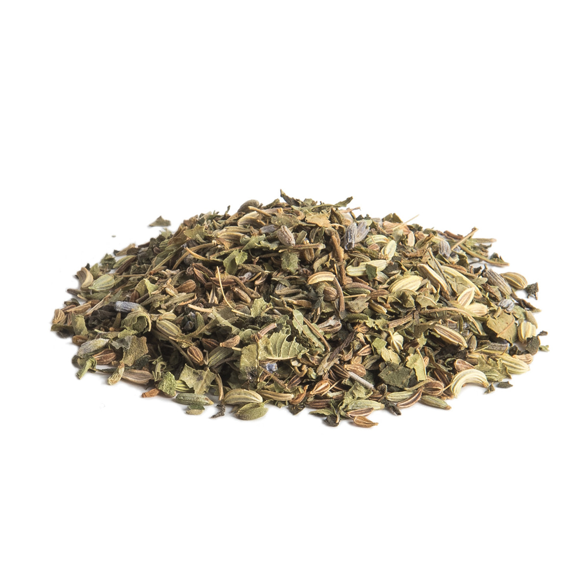 有機フェンネルスイート、有機アニスシード、有機レモンバーベナ、有機キャラウェイ、有機タイム、有機ネトル、有機ラベンダー