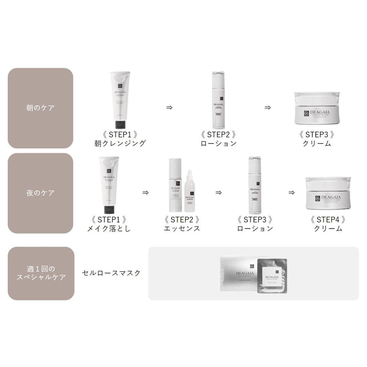 肌が失ったものをただ補うだけの従来のスキンケアに対し、再生美容コスメ『ディアガイア』は肌がキレイになろうとするスイッチを入れることで、上質なハリとうるおいに満ちた自立した肌を目指します。