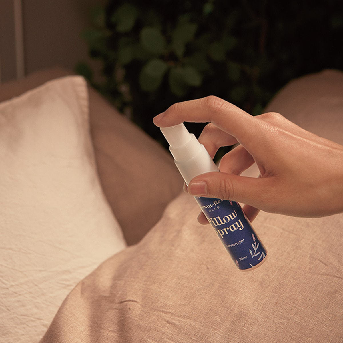 1日の終わりには、ピロースプレーを枕にシュッのおやすみ儀式で、気持ちのモードを切り替えましょう。