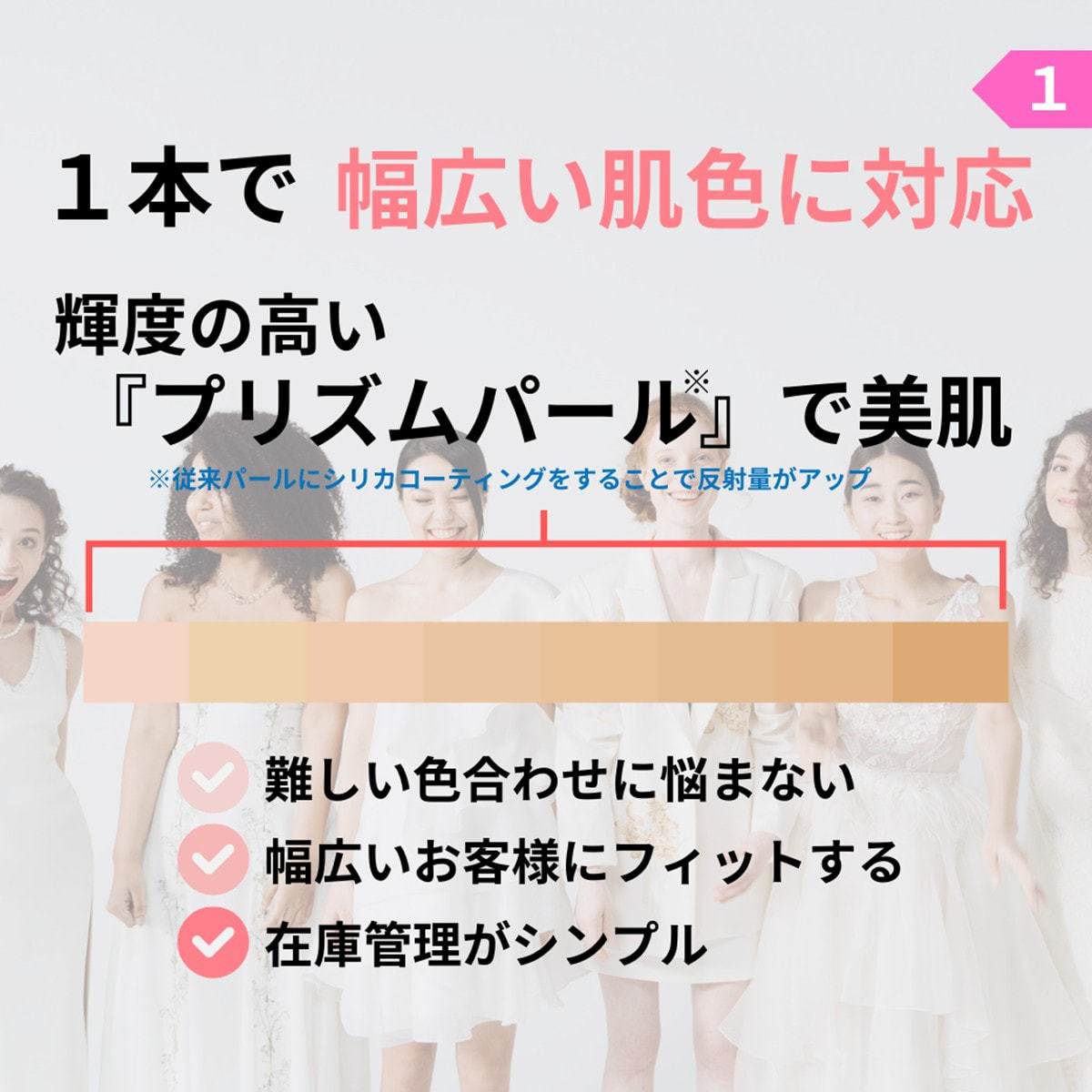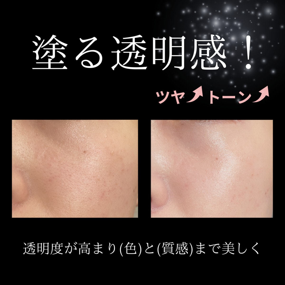 くすみを瞬時に飛ばすようにワントーン明るく、内側から透明感溢れる素肌のように整えます。